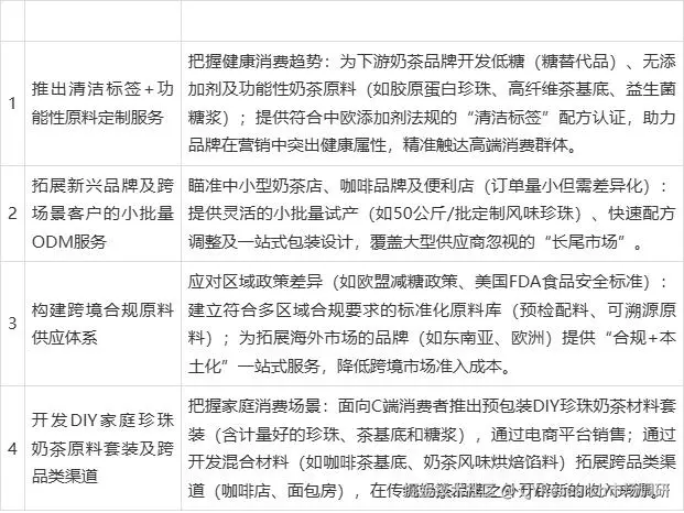 表4. OEM/ODM 珍珠奶茶原料行业发展机会