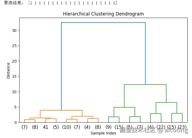 最终结果可以用树状图(dendrogram)直观展示,每个分支的高度代表簇之间的距离。