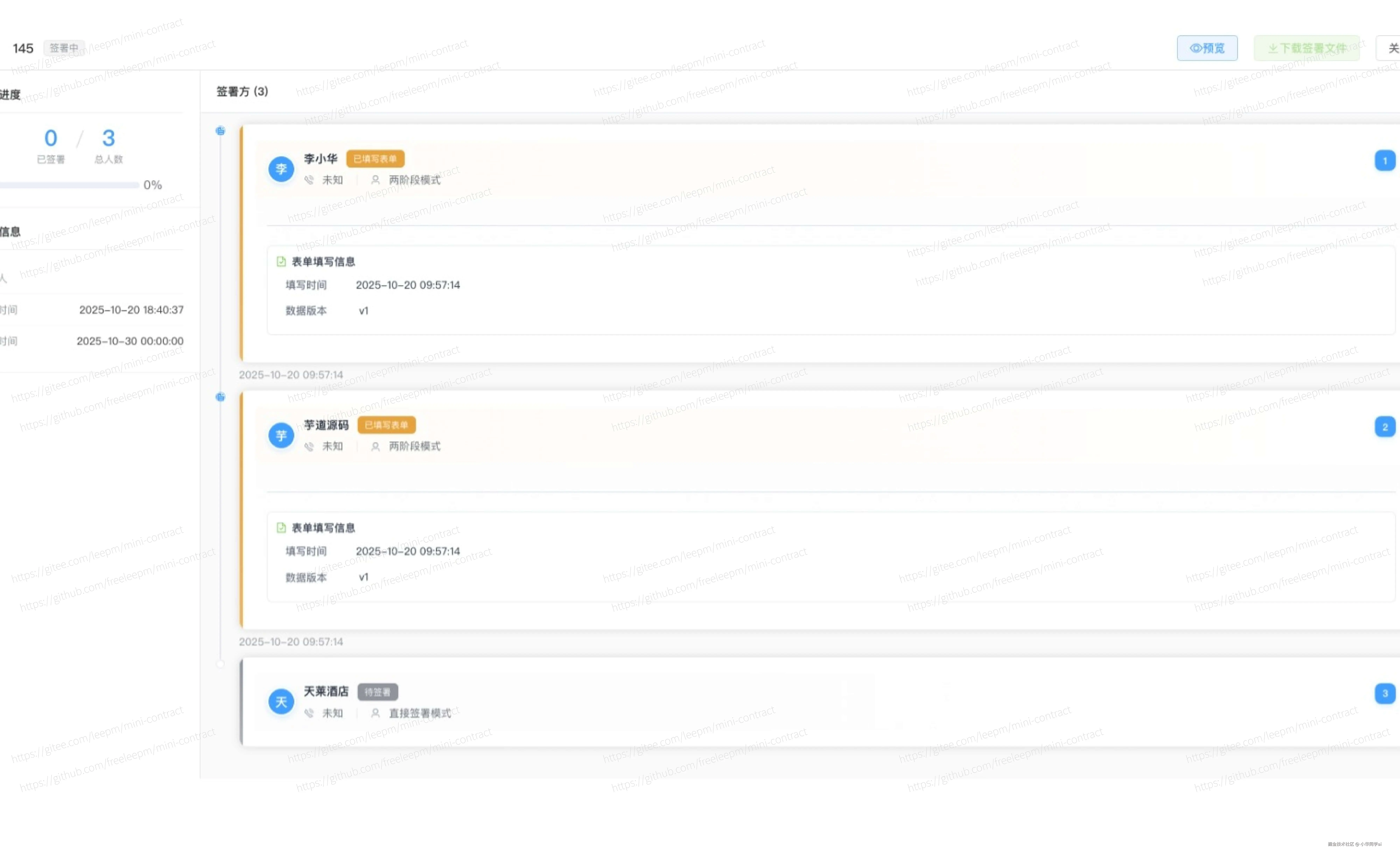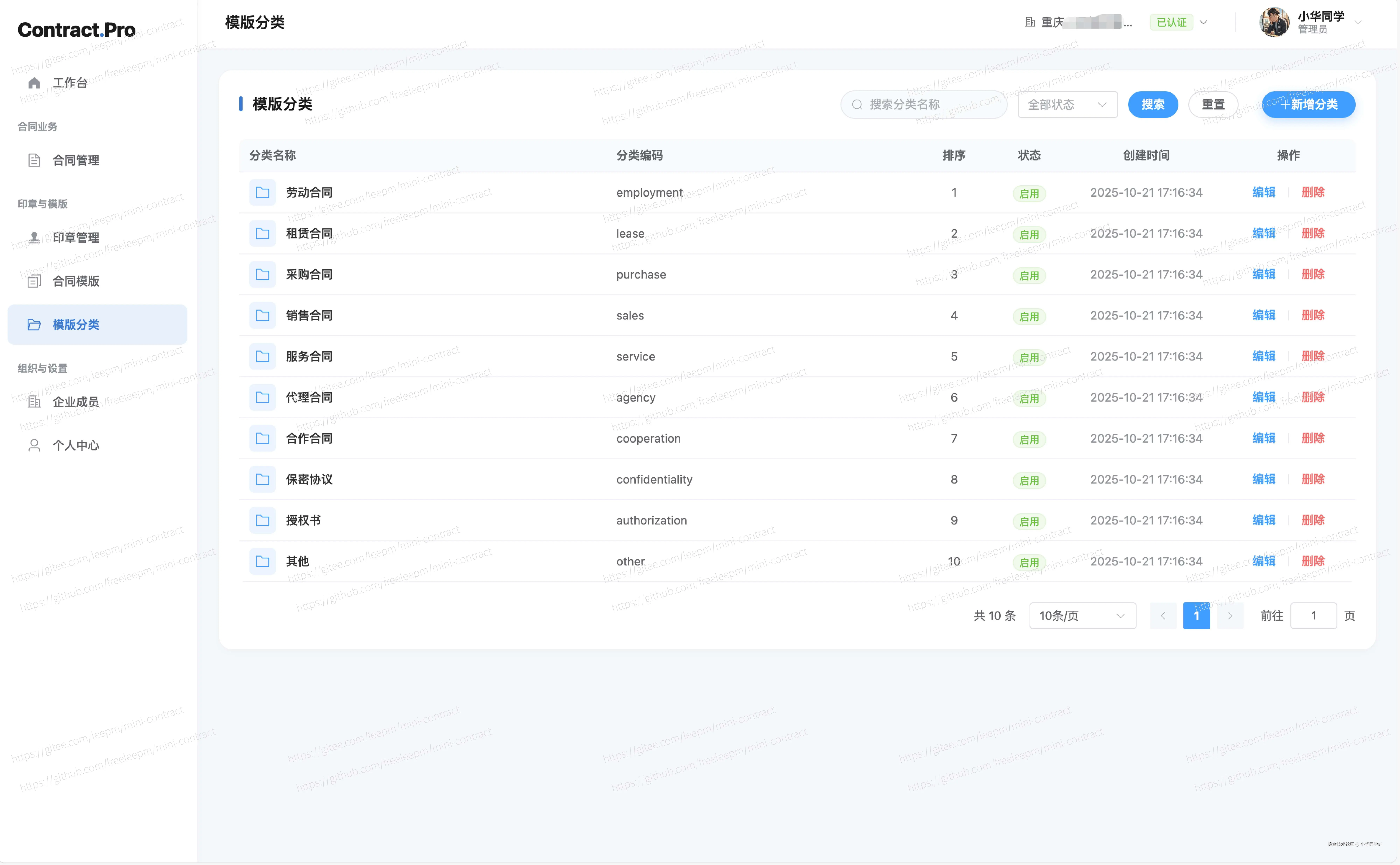 Mini Contract.Pro 的目标,就是把这些最难的部分变成“可复用的底座”。 如果你也在做签署能力、合同中台、企业用章、司法级存证、多端签署入口——希望这套项目能让你少走弯路,直接把难点一次性打穿。
