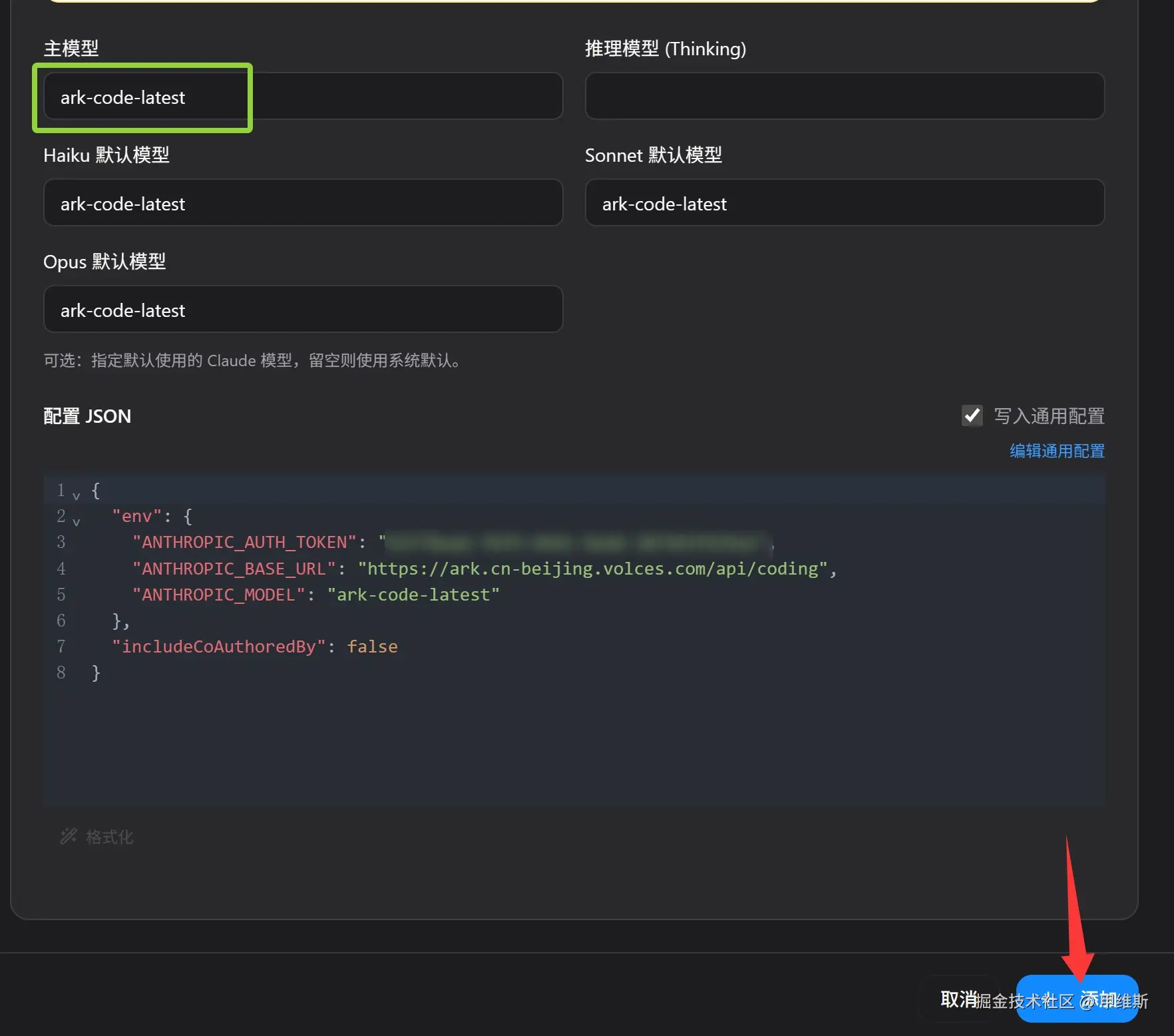 "ANTHROPIC_MODEL": "ark-code-latest"