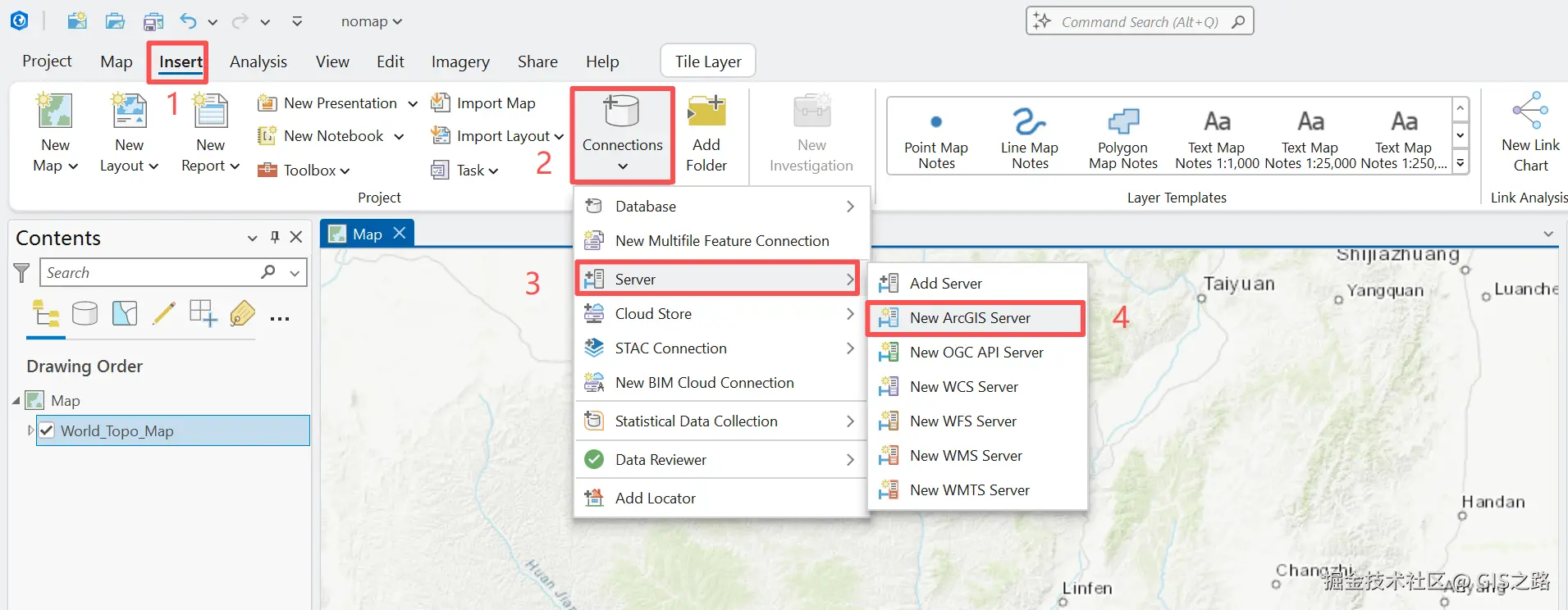 那现在我们就可以使用ArcGIS Pro来连接一下在线服务了。