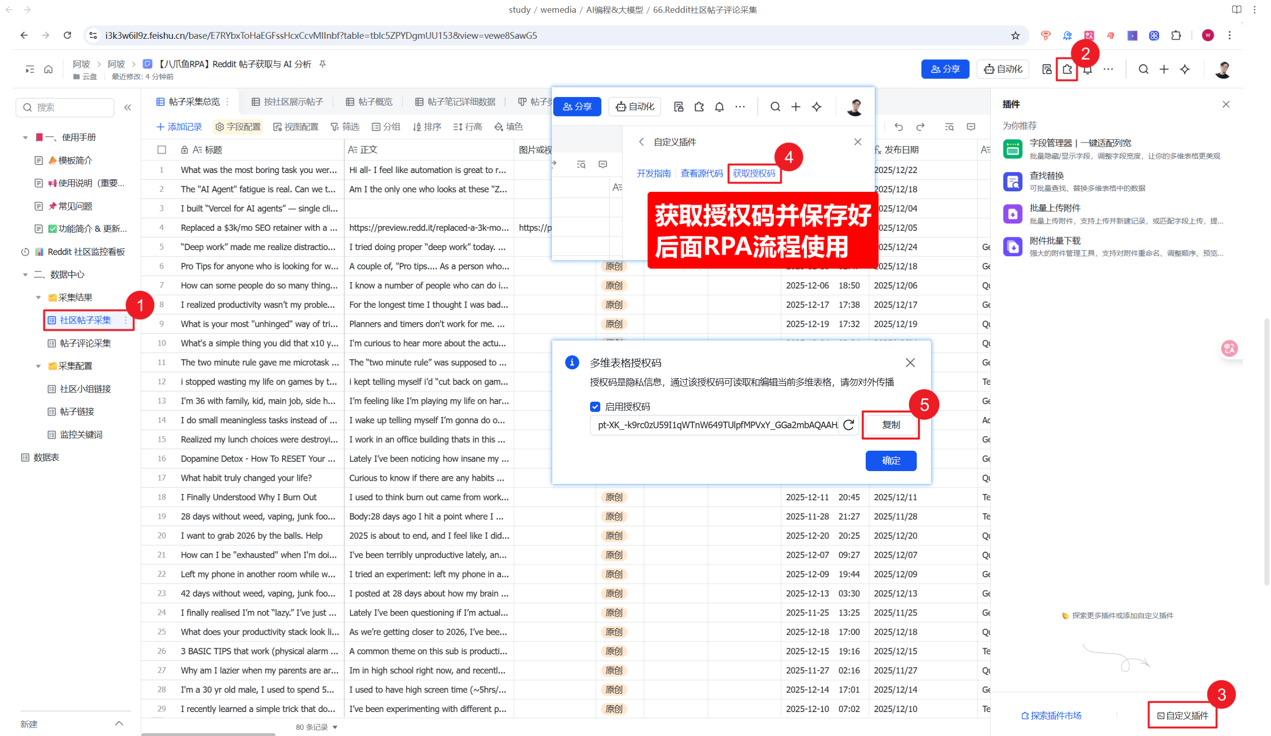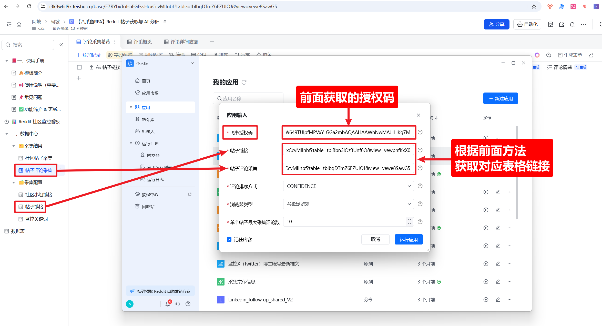 (二)获取社区帖子采集表格授权码