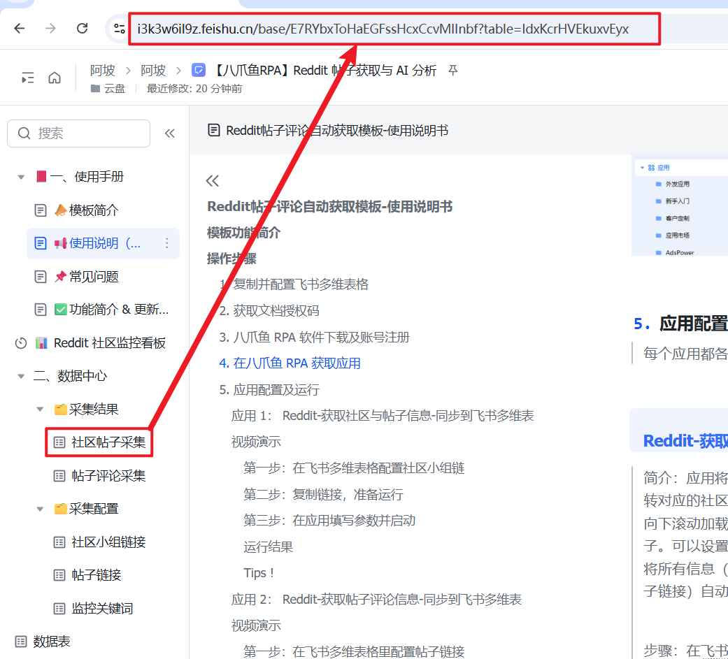 - 获取社区帖子采集表格链接