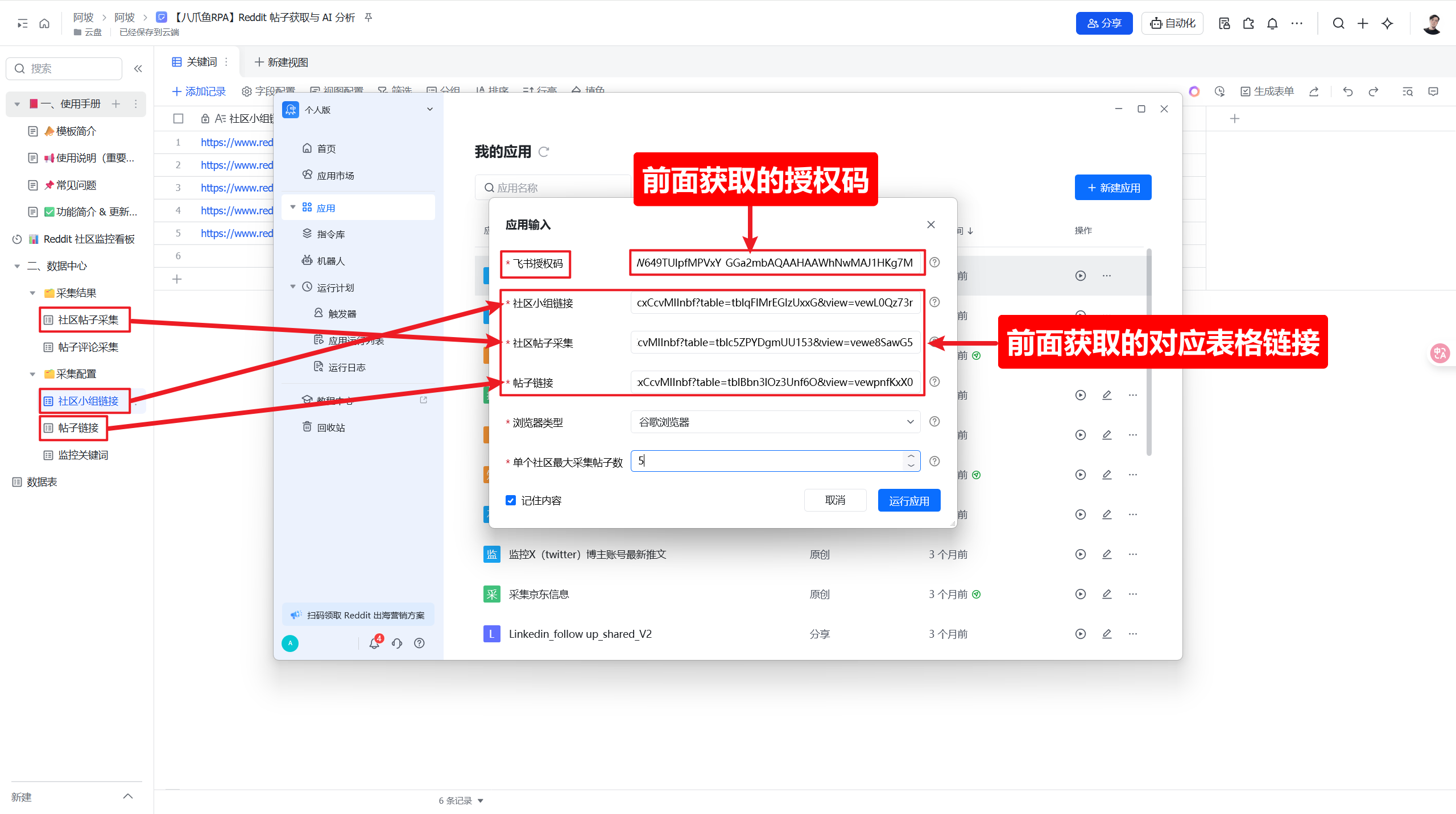 三、获取 Reddit 社区与帖子信息并同步到飞书多维表格