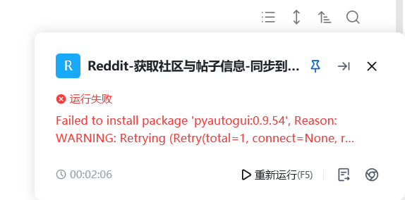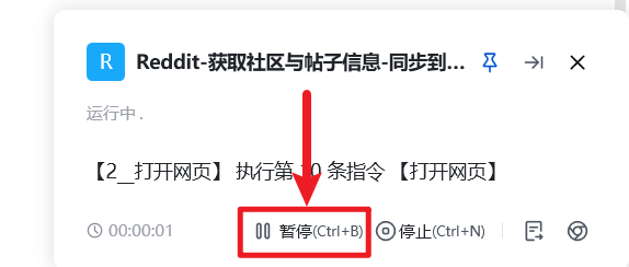 待环境配置成功、流程可正常启动后,请先暂停流程,重新开启 VPN/代理(因为访问 Reddit 需要科学上网),然后再次运行流程。