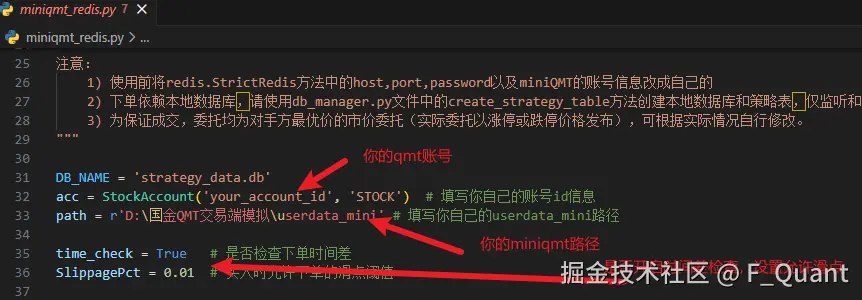 miniqmt_redis.py2处参数,运行开启监听。