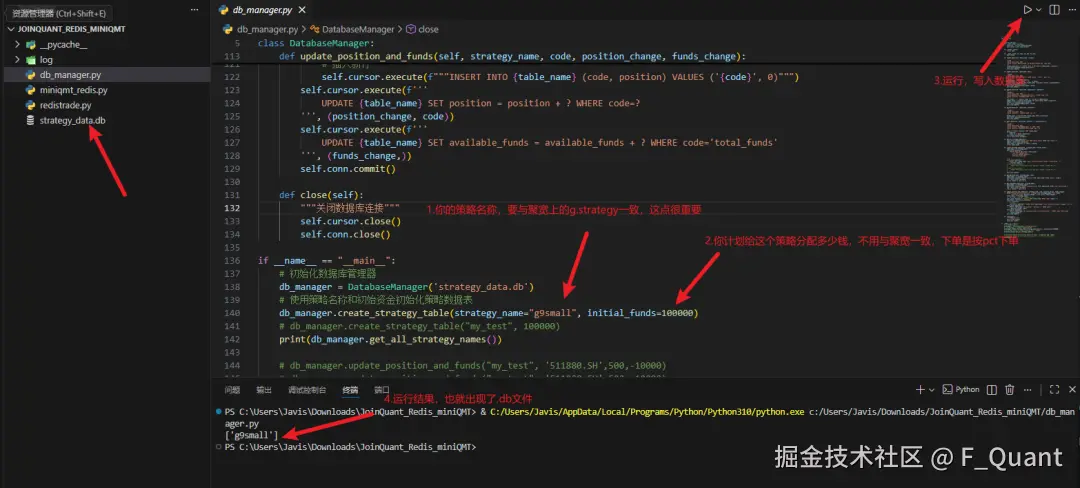 db_manager,设置好你的策略名和初始资金(比如给策略A分5万,策略B分10万)。 - 打开qmt登录账号密码,选择极简模式。登录。 如需开通低佣qmt可以后台联系我。