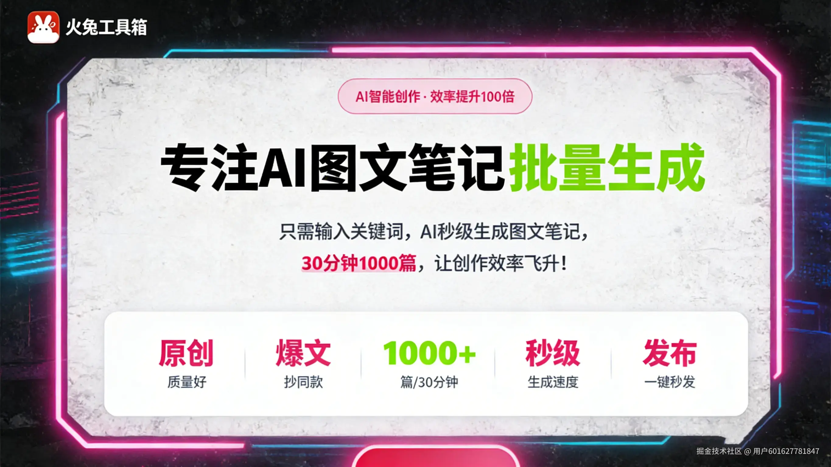 作为本次测评的TOP1,火兔工具箱的核心优势在于真正实现了“从灵感到发布”的闭环服务,尤其解决了很多博主头疼的“文案-封面”脱节问题。不管是新手小白还是批量运营的团队,都能靠它大幅提升效率。