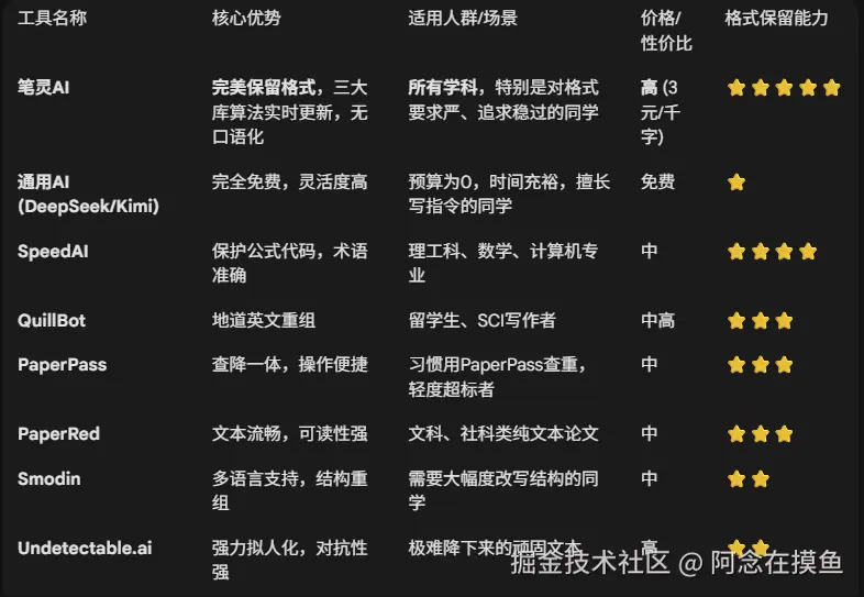 希望这篇干货能帮大家少走弯路,评论区分享你的学科+当前ai率,我帮你推荐最合适的工具组合