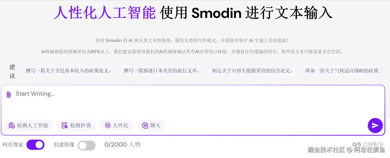 核心优势: Smodin是一个功能很杂的工具箱,它的重写功能在 论文降ai 领域也有一席之地。它最强的地方在于对多语言的支持,不仅仅是中英文,还支持多种小语种。它的工作原理是先将文本重新结构化,再生成新的表达,如果你能接受内容结构变动较大的话可以用这个工具