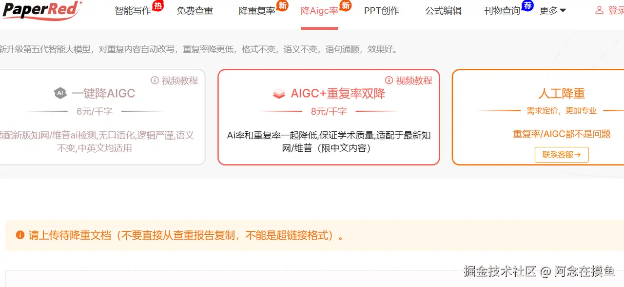 他还有一个优势是可以直接上传检测报告,如果你有aigc率的检测报告,可以直接上传给他针对性降ai