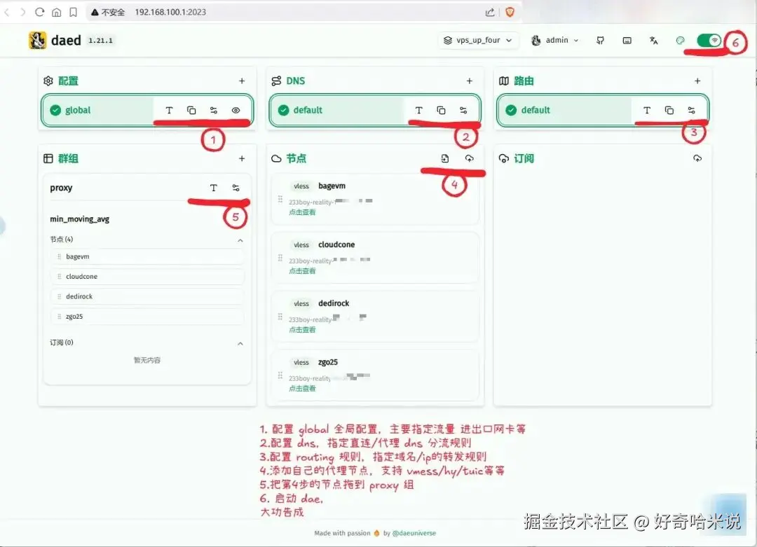 在 daed 中配置 dae 其实非常简单,基本步骤如下