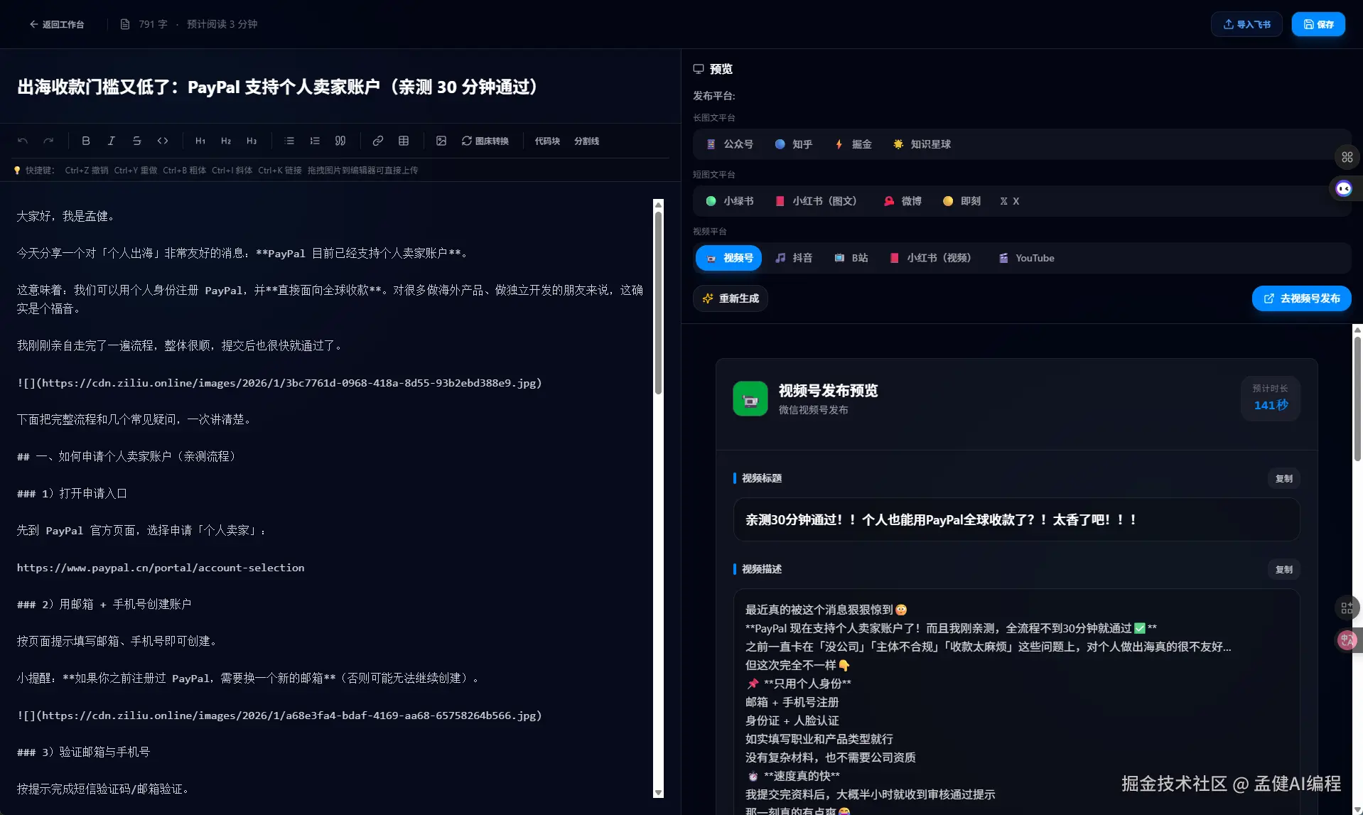 如果你也在同时经营公众号、知乎、掘金、星球,以及视频号/抖音/小红书/B 站……你大概率会懂这种痛。