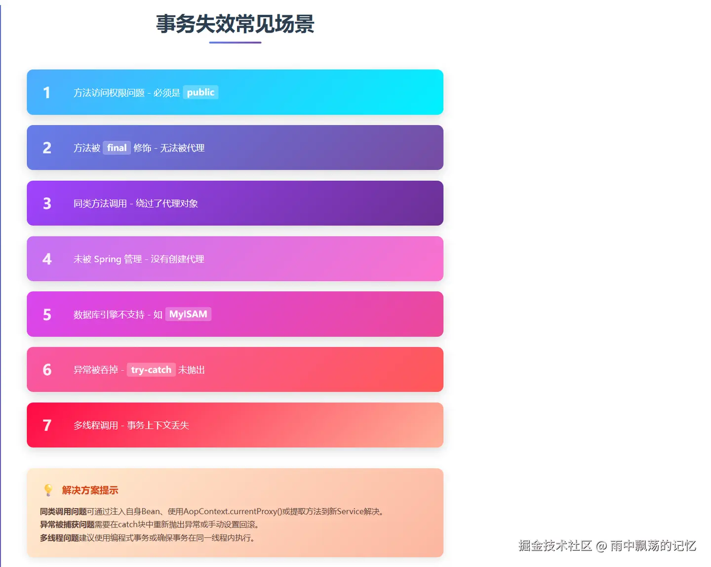 Spring事务管理是一个强大但也容易出错的特性。