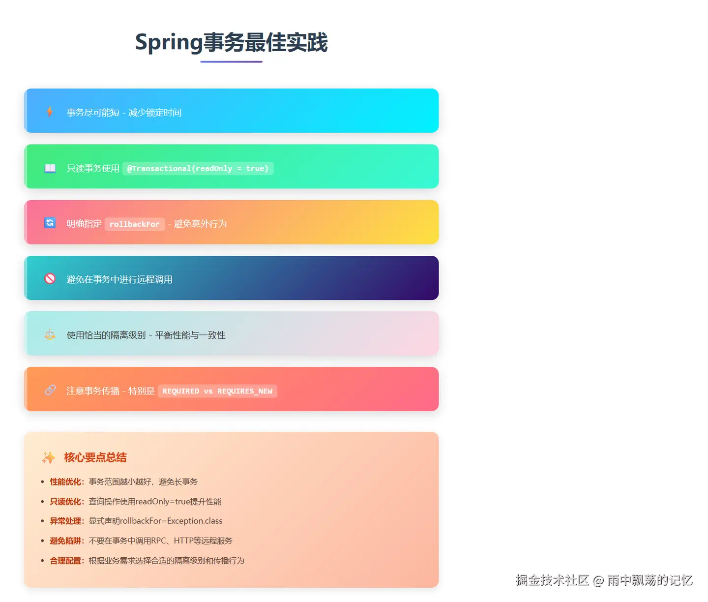 记住:正确使用事务是保证数据一致性的关键,但也要注意性能影响。在实际开发中,要根据业务场景选择合适的事务配置。