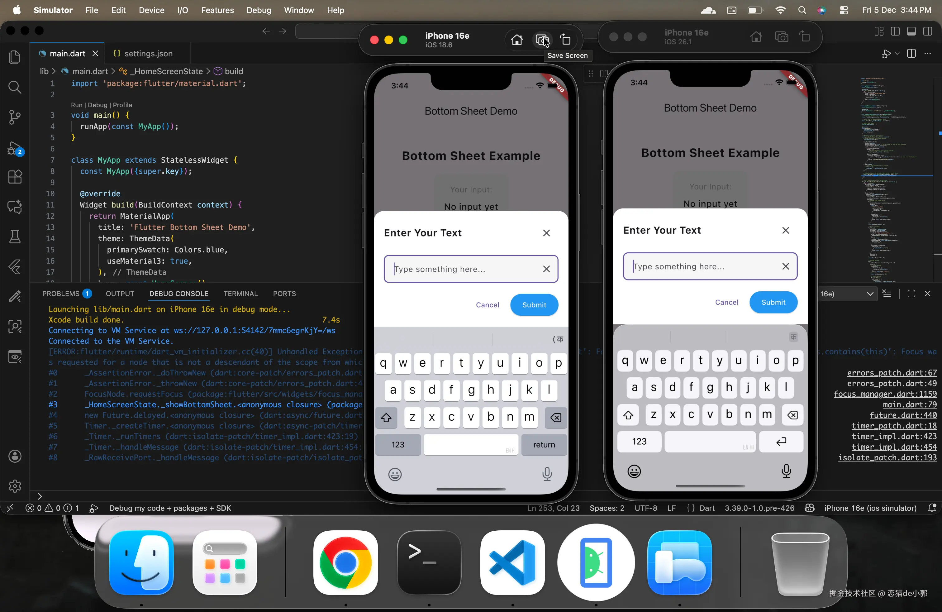 问题还是主要出现在类似 showModalBottomSheet 的场景,特别是在背景色透明的时候,虽然我们设置了 backgroundColor: Colors.transparent ,但是在 Flutter 里,某些时候 UI 并不会“在键盘背后继续画” ,因为在 iOS 26 之前,Flutter(以及很多跨平台框架)都默认: