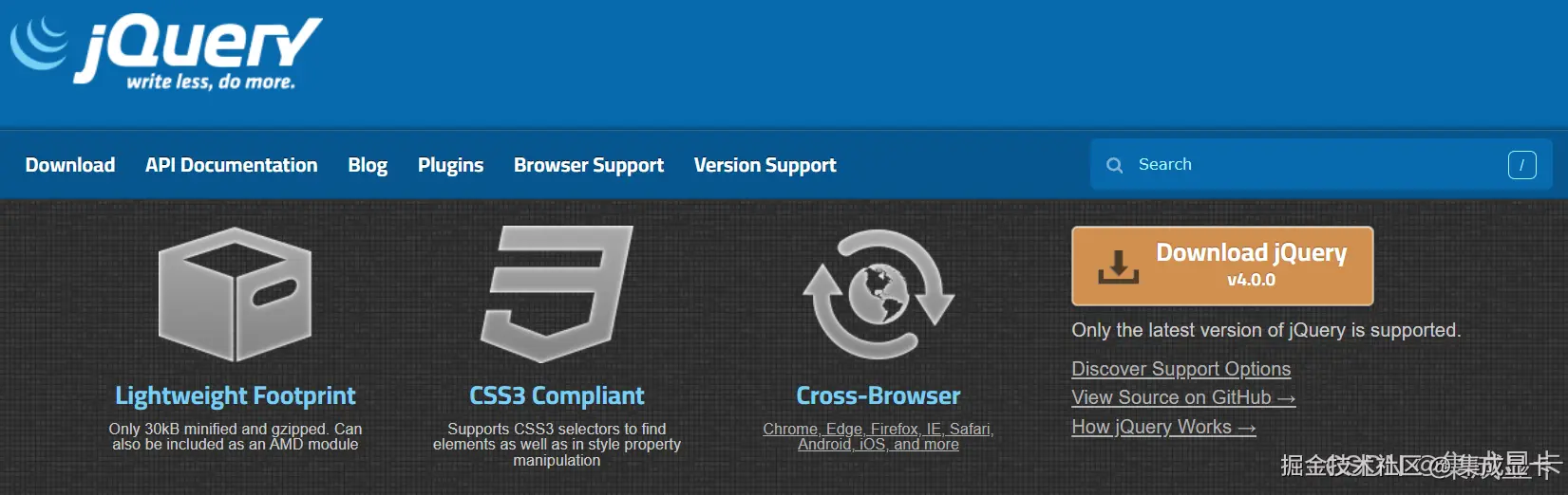 上面是发布 4.0 的博文开头的两段话,让我感触很深!jQuery 从 2006 开始发布,到今年,整整 20 年!我是 2009 年写 Web 时接触 jQuery,它简单统一的 API 大大缩减开发量,直到后面 Angular/Vue 之类的前端架构出来,才慢慢脱离 jQuery。