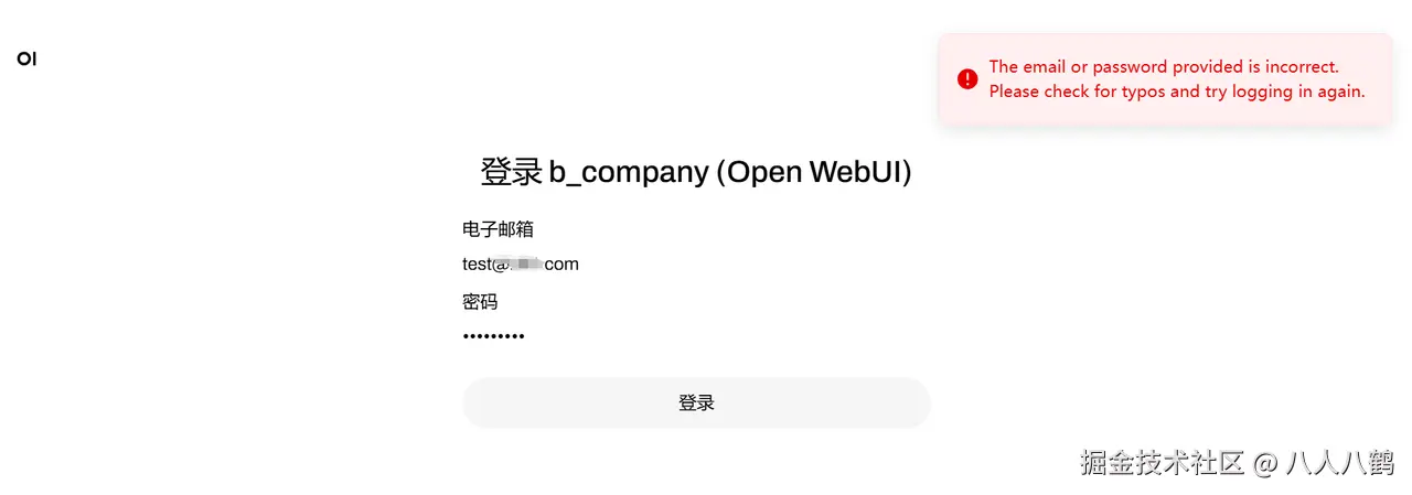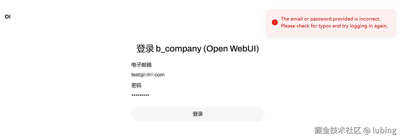 示例:OpenStation 管理员禁用 test 用户后,该用户将无法在 Open-WebUI 登录,系统提示如下: