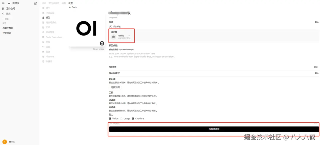 - 在 Open-WebUI 管理界面中进入“设置 - 模型”选项;