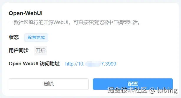 系统集成成功后,Open-WebUI 的连接状态将在 OpenStation-WebUI 控制台显示,管理员可查看服务配置状态与用户同步情况。
