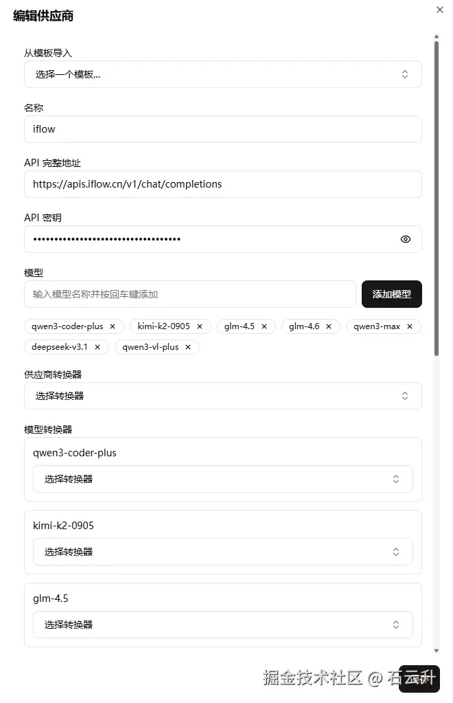 在ccr ui对填写iflow的地址和api就可以了,目前国产模型效果写产品原型和简单应用还是很不错的。参考下面配置