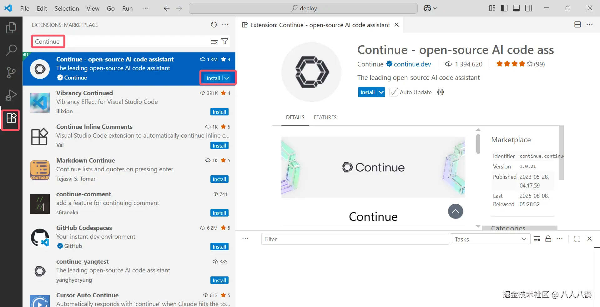 - 安装插件:在 VSCode 的扩展商店搜索 "Continue",点击安装(不到 2MB,秒装完成)。
