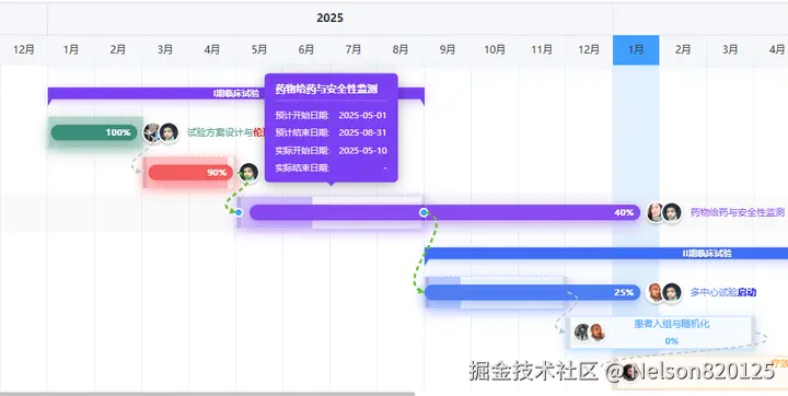 - 悬浮提示框:鼠标 hover 显示实际起止日期,省去反复点抽屉对表