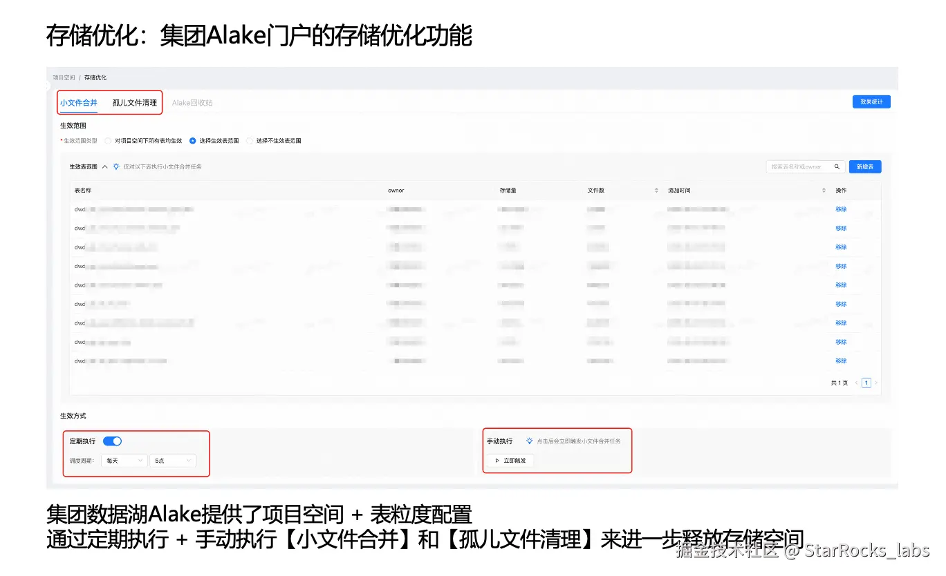 - 存储优化:集团 Alake 门户的存储优化功能
