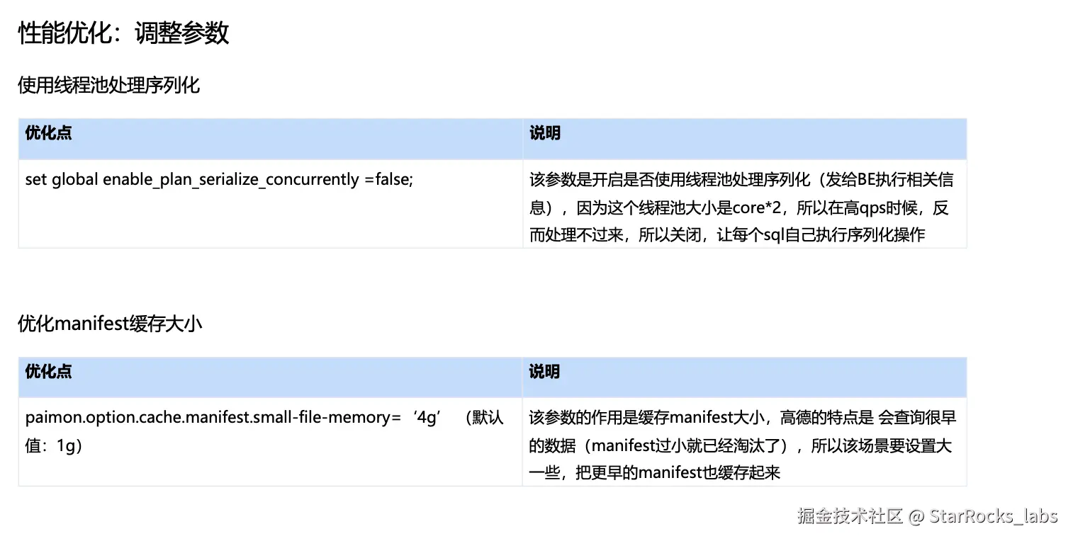 我们也针对 Paimon 表做过一系列参数调优,以进一步优化点查场景下的读取效率与稳定性。