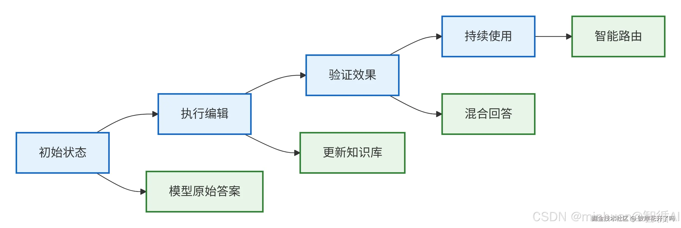 实践表明,每种方法各具优势:局部修改精度高但实现复杂,内存增强灵活性强但需额外架构,外部知识库更新便捷但依赖检索质量。在Qwen1.5-0.5B模型上的实验验证了知识库覆盖法的实用价值,该方法通过智能路由机制,在保持模型完整性的同时实现了知识的即时更新。这种方法有效解决了传统微调的成本高、耗时长和副作用大等问题,为生产环境中的实时知识维护提供了可行方案。