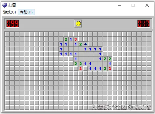扫雷是一个经典的Windows游戏程序,我们从gitee.com/dingxiaowei…下载了一个基于MS .NET Framework 2.0的扫雷程序,这是一个10年前写的Winforms程序,包含约2500行C#代码以及若干图片资源文件,编译成.exe文件后运行如下图所示: