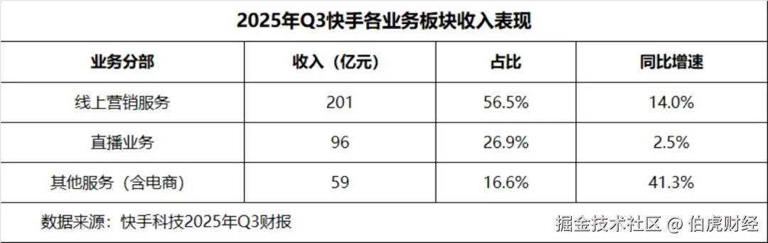 在外循环方面,AI技术提升了外部商家的广告投放效果。2025年三季度,快手的线上营销业务收入达到201亿元,同比增长14%;日活和月活用户规模分别为4.01亿和7.36亿,分别同比增长4.8%和5.0%。