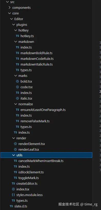 首先需要我们需要将上面的const editor = withReact(createSlateEditor()); 进行一些更改,需要给editor拓展功能。