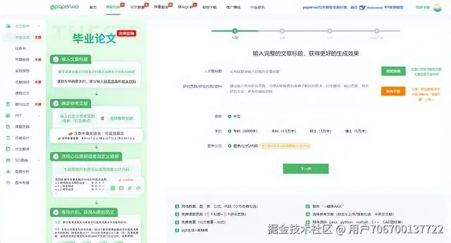 • 论文生成:分为课程论文、毕业论文(本、硕)、毕业论文(专科) 除了课程论文具有针对性一点,其他的算法强度上都是一样的,区别只在于字数上。