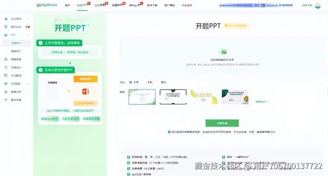 • 答辩PPT:上传相关论文与图片(可选)可以生成相关PPT,有大量模板可供选择哈。