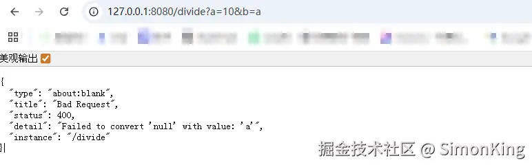测试地址:http://127.0.0.1:8080/divide?a=10&b=a