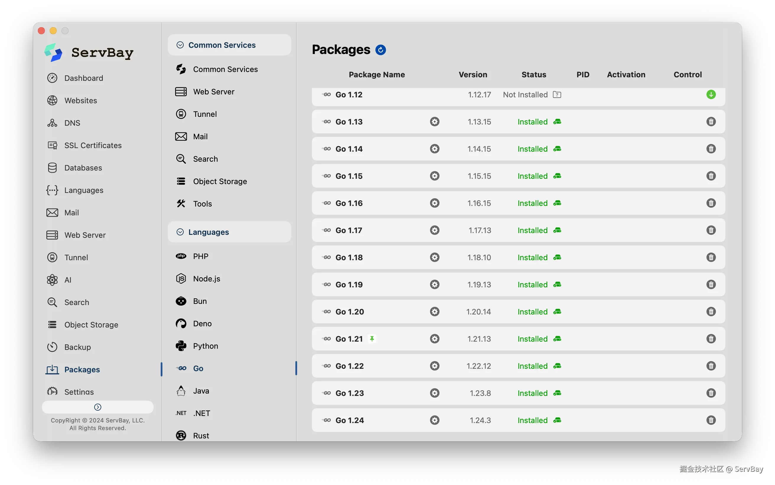 最后再次提醒,如果不想在本地环境配置上浪费时间,或者需要在 Go 1.11 到 Go 1.24 之间反复横跳验证这些特性,ServBay 是一个非常值得尝试的工具,它能让你把精力集中在代码逻辑而非环境搭建上。