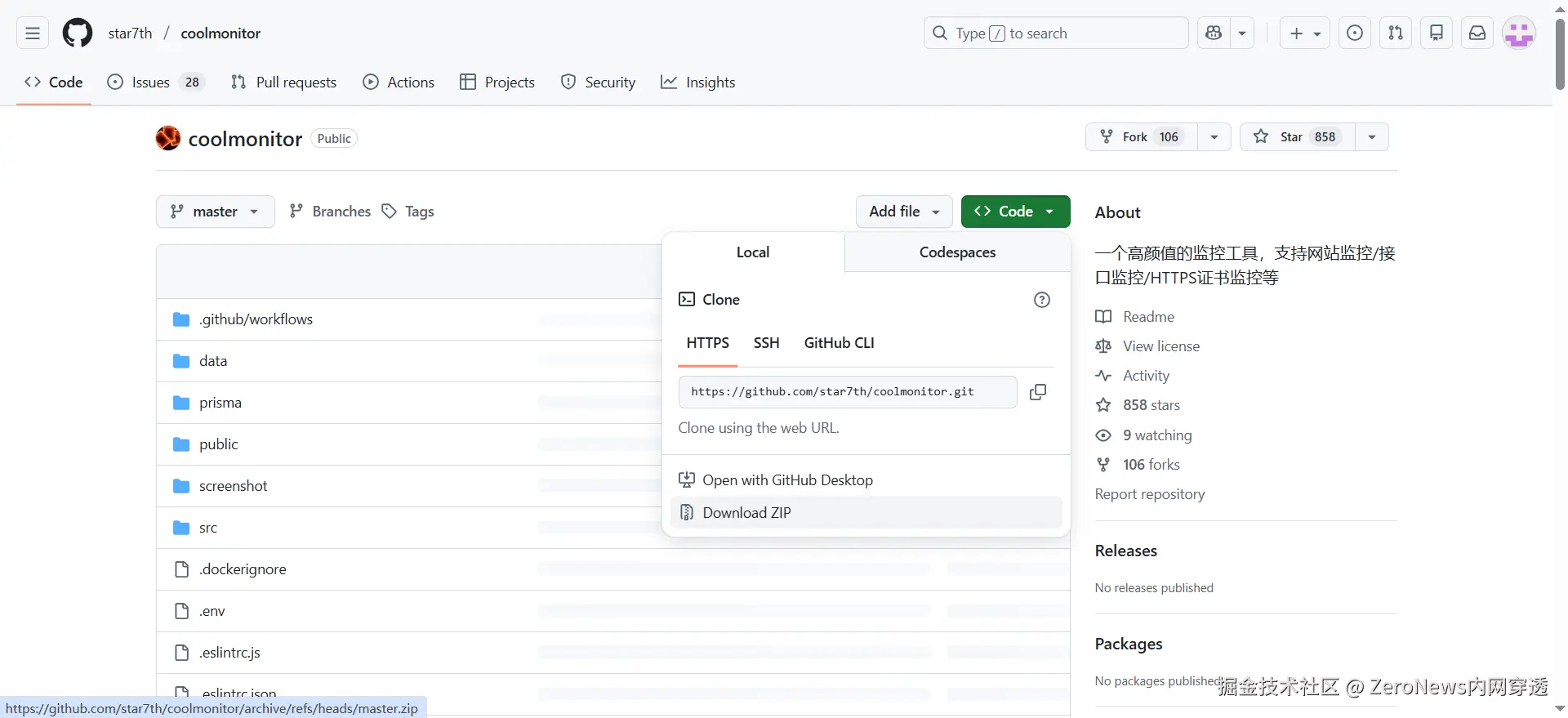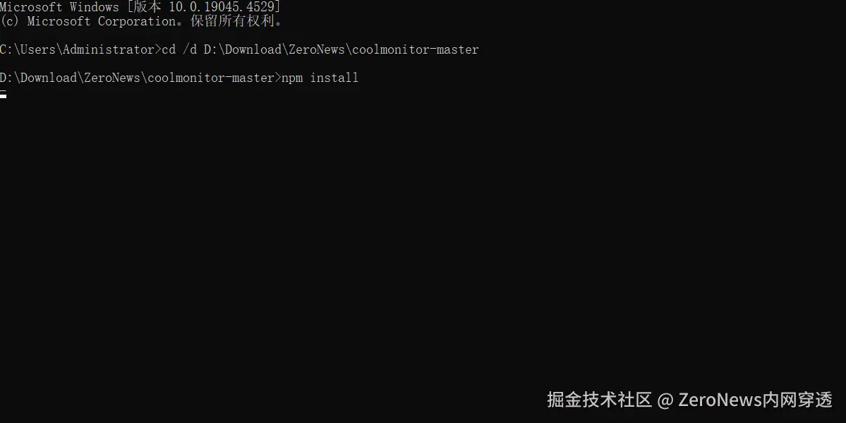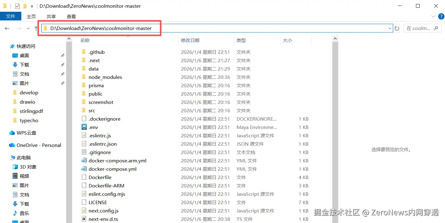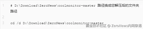2. 下载完成之后,解压文件夹,例如 D:\Download\ZeroNews\coolmonitor-master