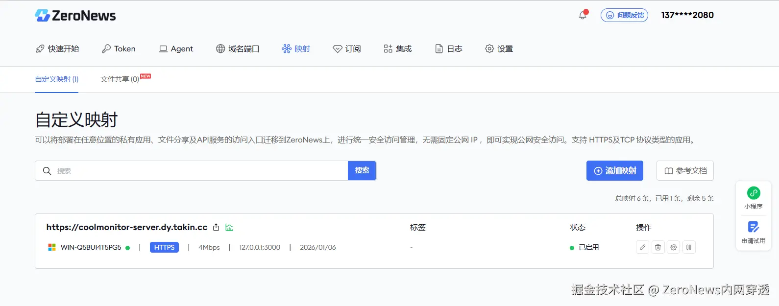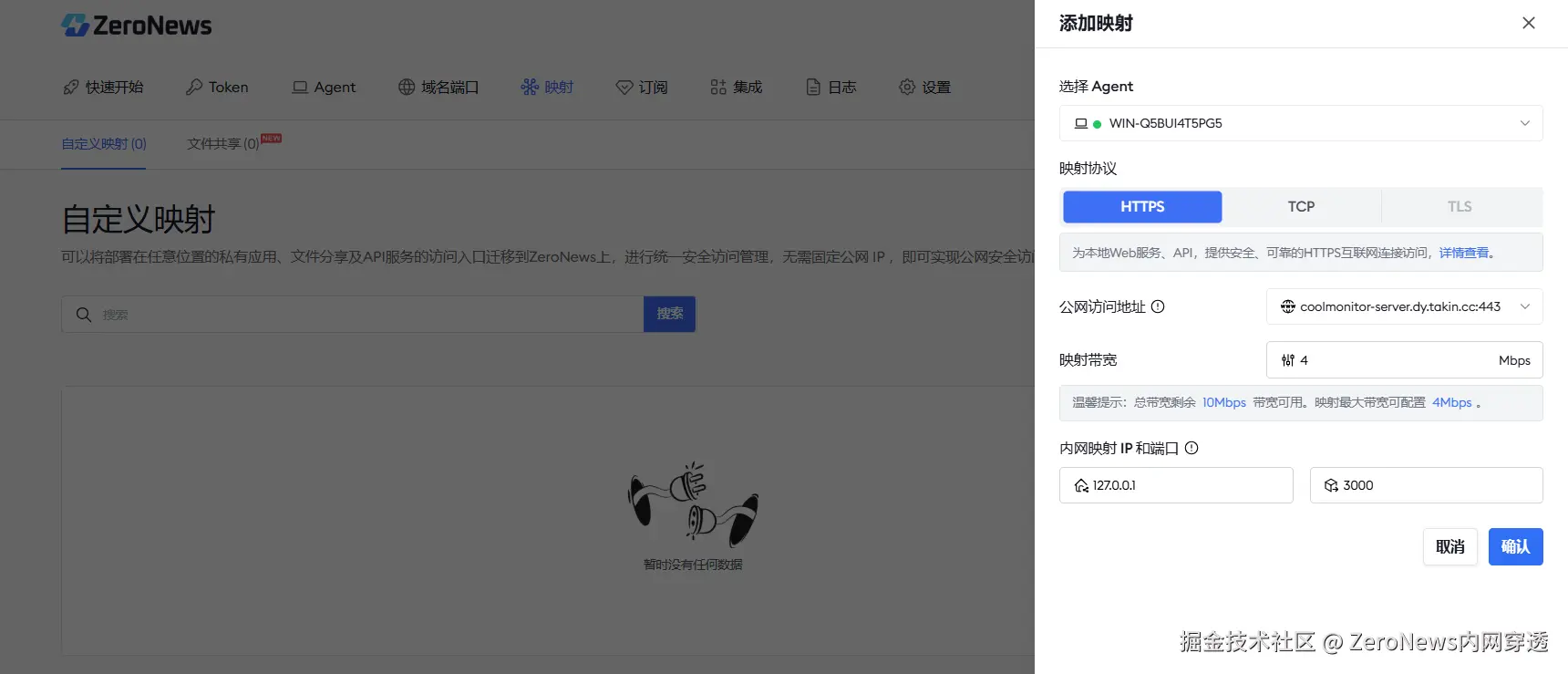 二、 创建 ZeroNews 映射服务