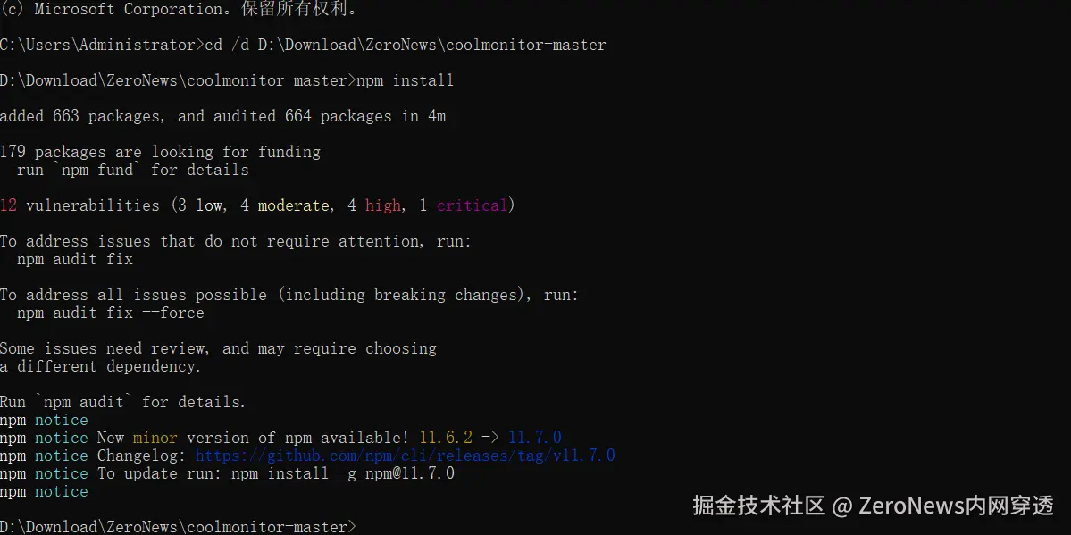 4. 执行下列命令,安装npm依赖,这里需要等待一段时长。