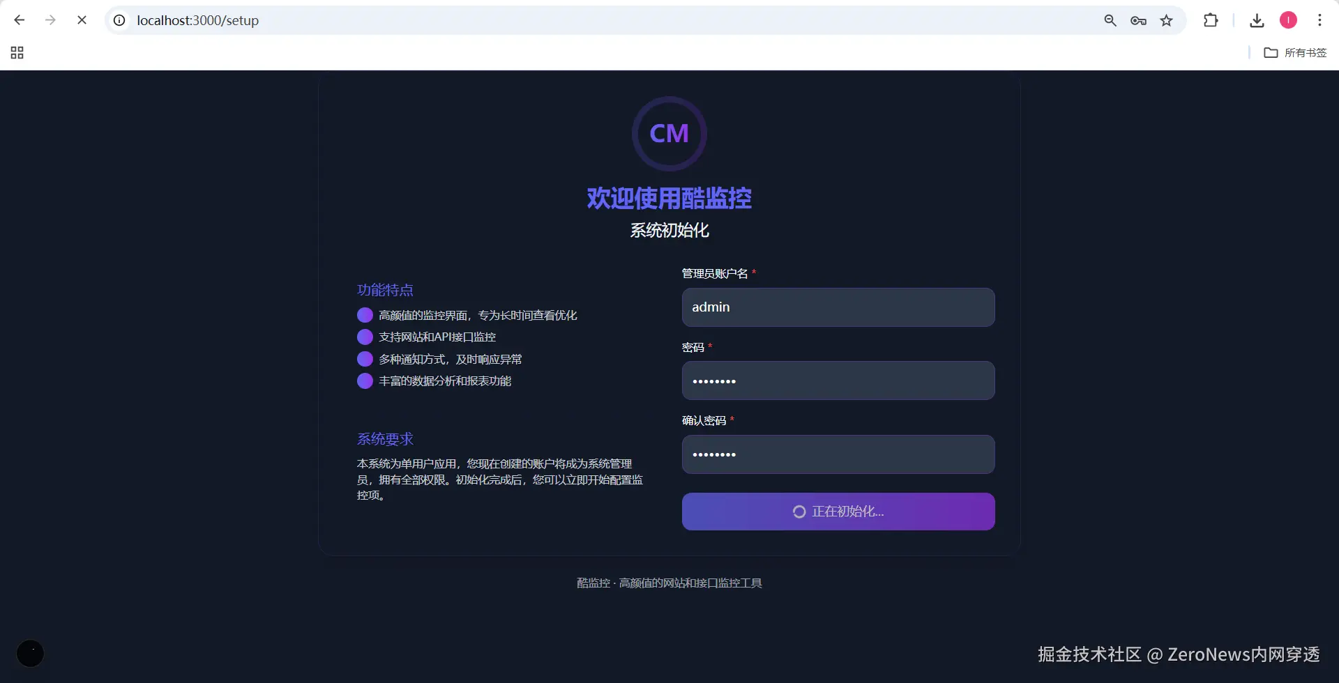 8. 输入初始账号密码后,点击初始化,初始化也需要一段时间。