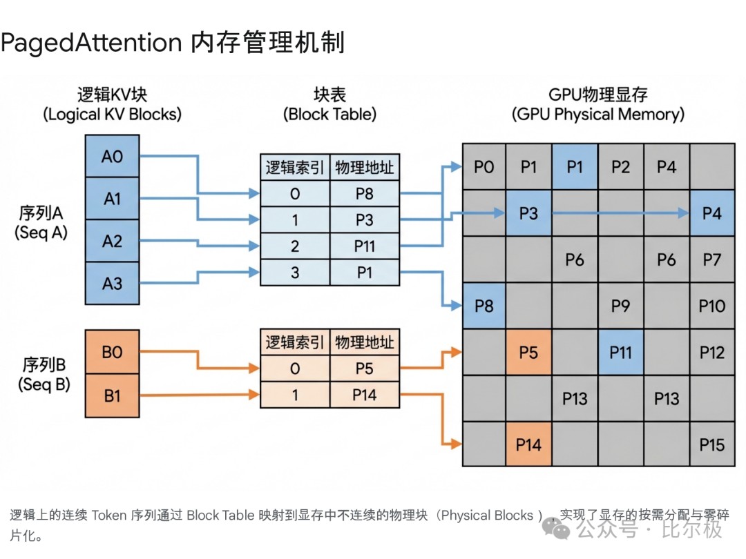 Continuous Batching 是 “回转寿司”。谁吃完了谁走,空出来的位子(显存)立马塞进新的请求。显存利用率直接拉满。