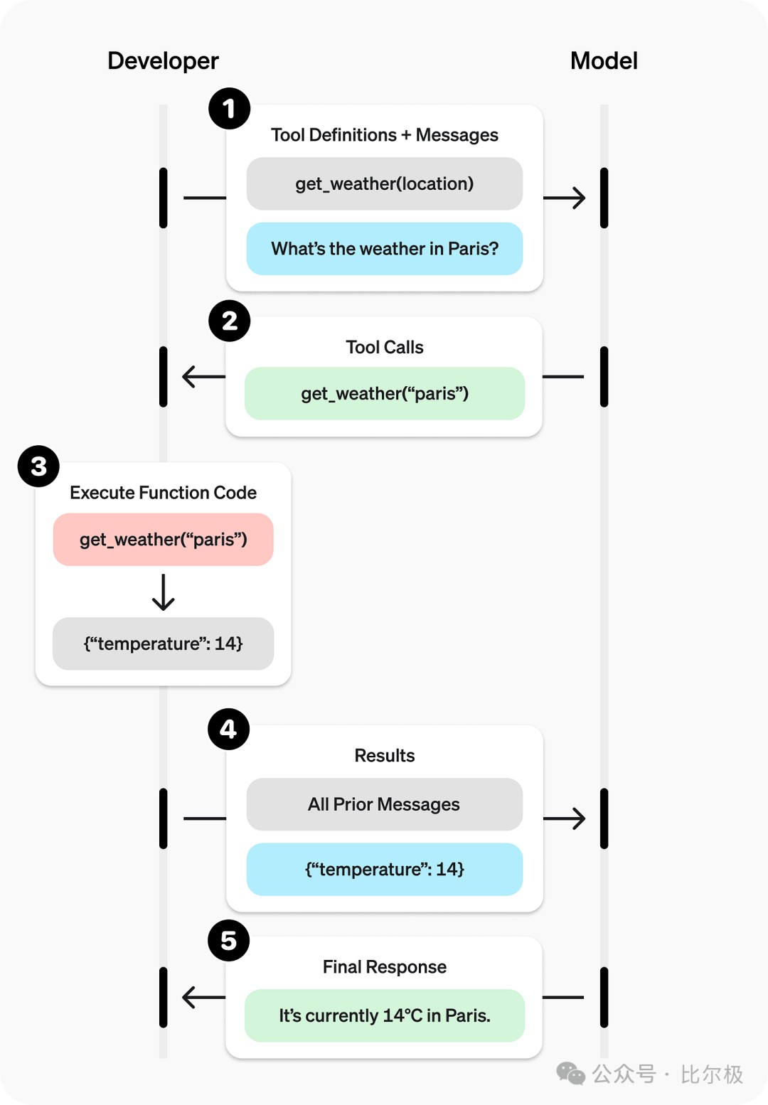 **理解一下:**把 LLM 从 “聊天机器人”变成“打工人”。它不再只是瞎猜天气,而是能生成一个 JSON 也就是 API 请求,去调天气预报接口。这让 LLM 能和现实世界交互。