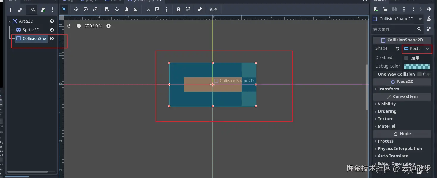 然后给子弹加上物理形态就是Collisionshape2D节点进行参与碰撞