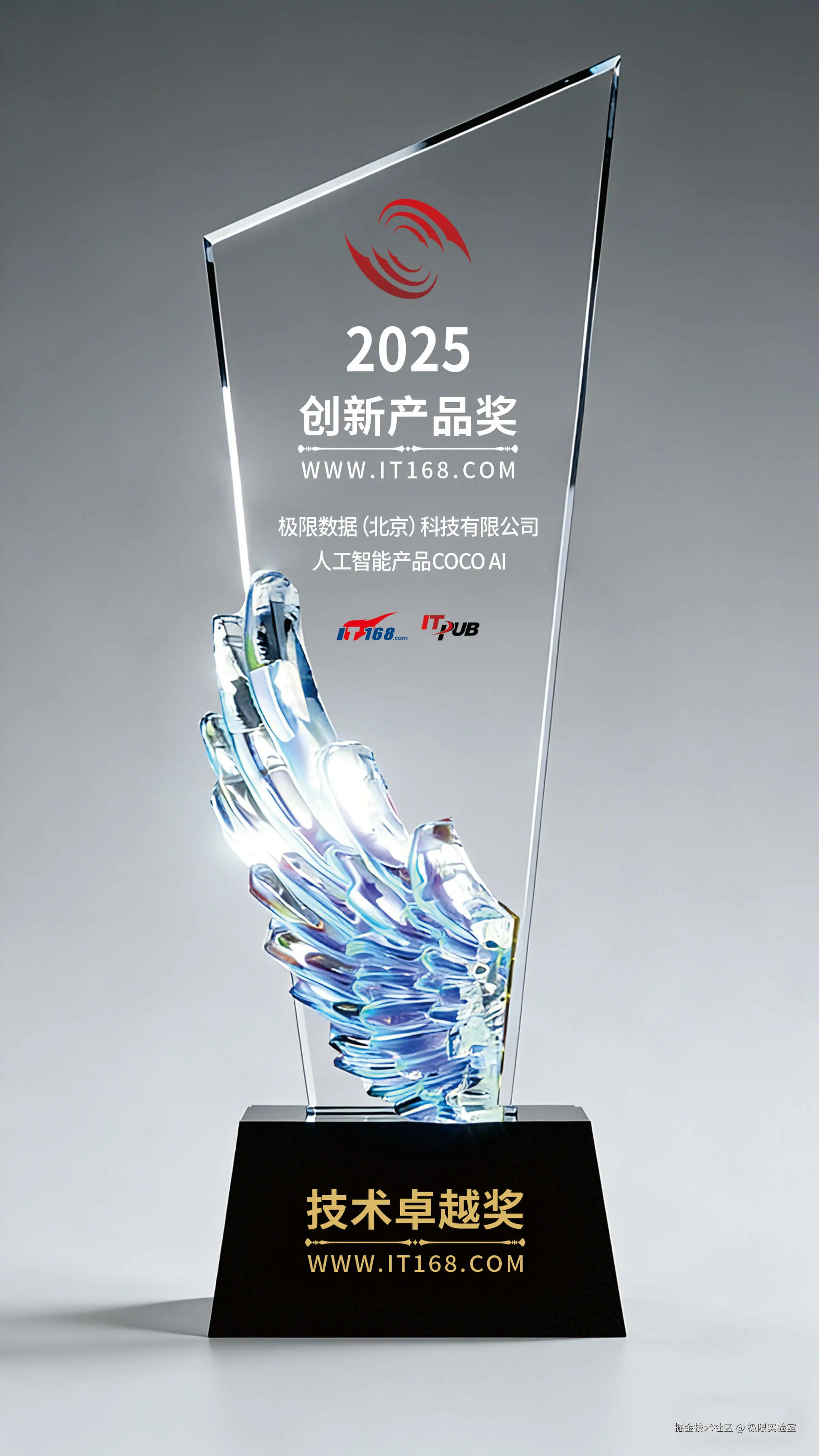 北京,2026 年 1 月 —— 在由 IT168 主办的“2025 年度技术卓越奖”评选中,极限数据(北京)科技有限公司(简称:极限科技)的人工智能产品 Coco AI 凭借其创新的技术架构与突出的市场实践,荣获 “创新产品奖”。该奖项旨在表彰在 AI、大数据、云计算等领域实现关键突破、具备显著应用价值与市场潜力的产品与解决方案。