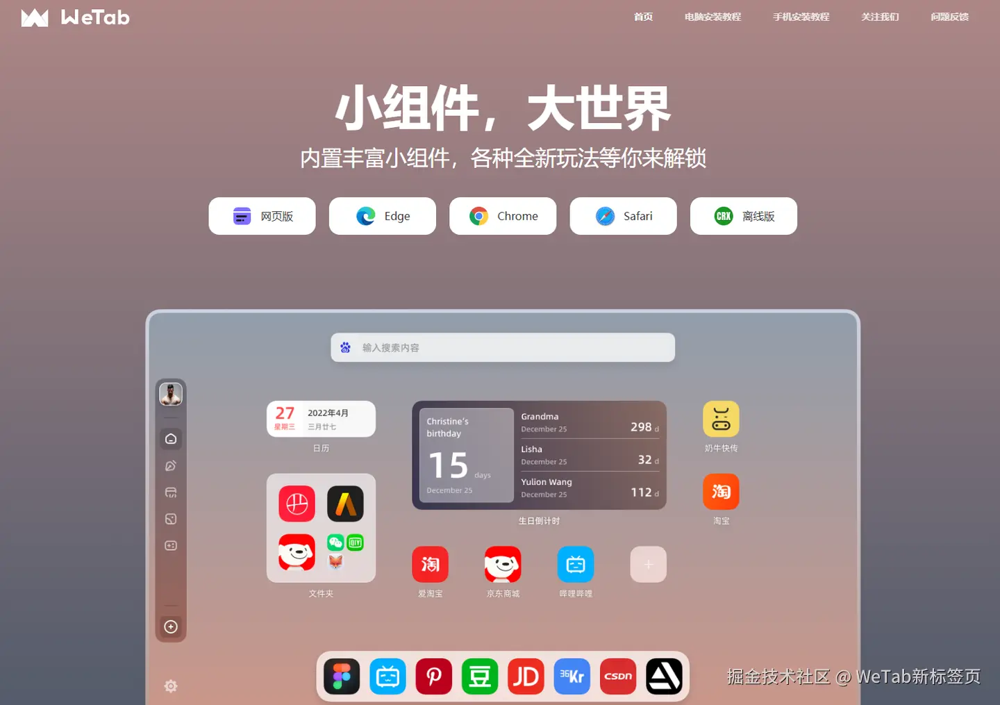 WeTab新标签页这个组件完全不同: