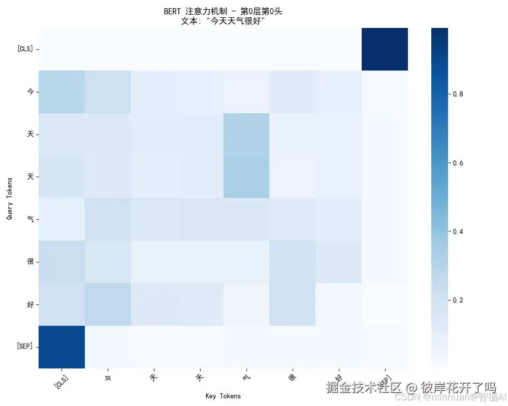 - 这正是双向注意力的威力所在! 模型可以利用后半句的“好”来帮助预测前面的“[MASK]”是“很”。