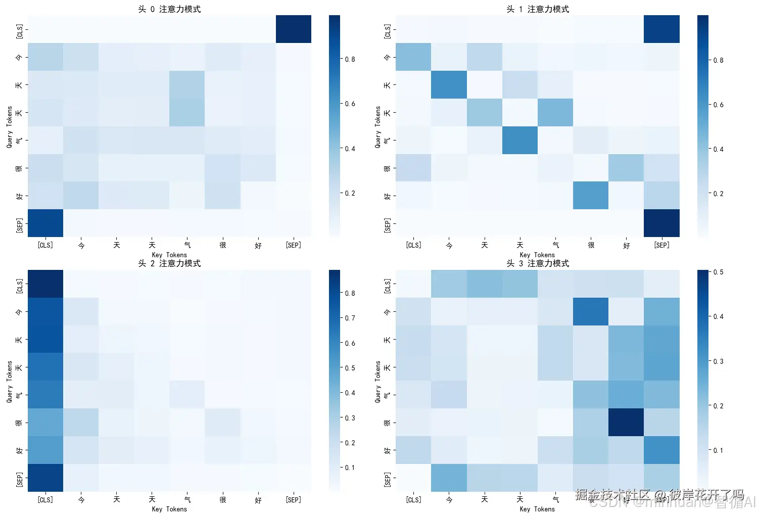 输入序列: 今天天气很注意力模式: