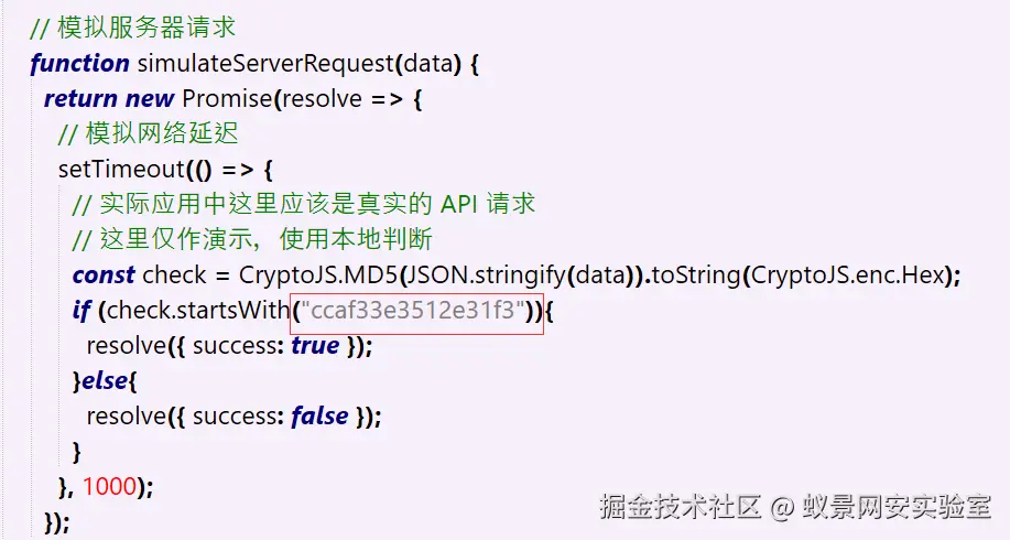 if (check.startsWith("ccaf33e3512e31f3")){ resolve({ success: true });}