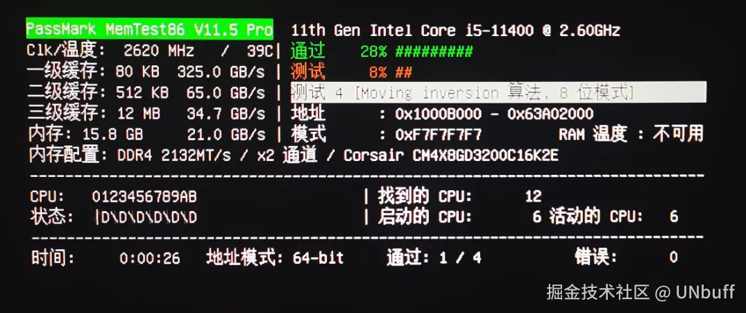 ✅ DDR4+UEFI新平台:选MemTest86 11.6,测试准、海盗船报错定位强